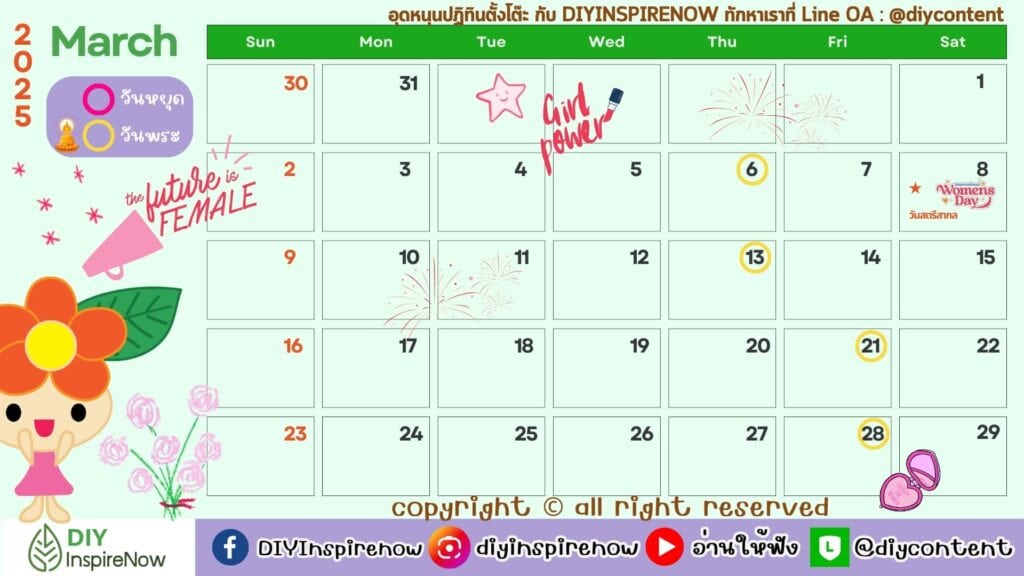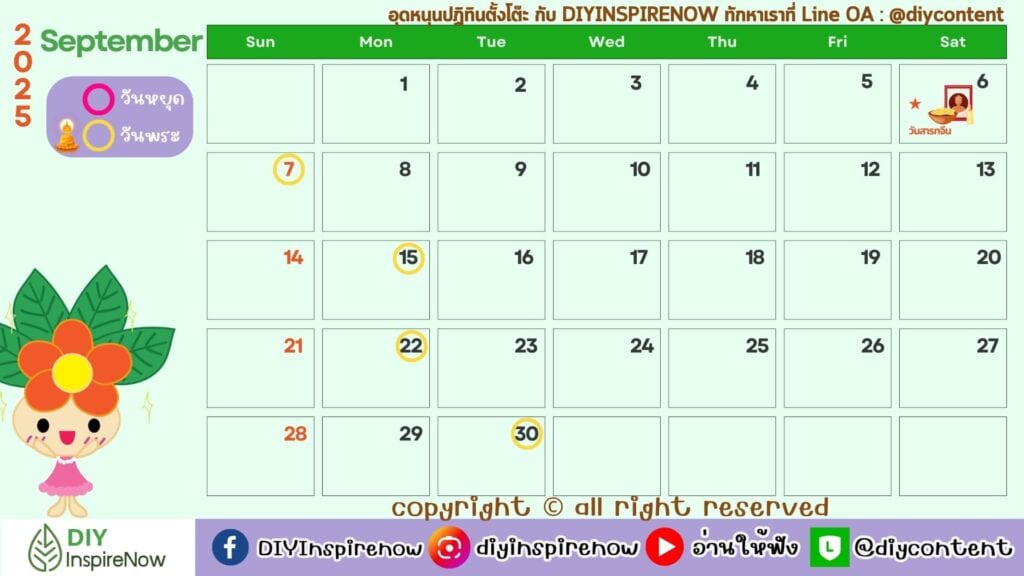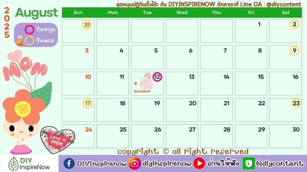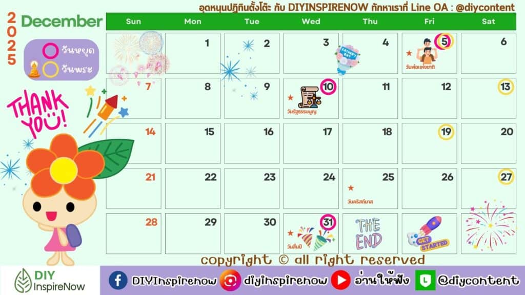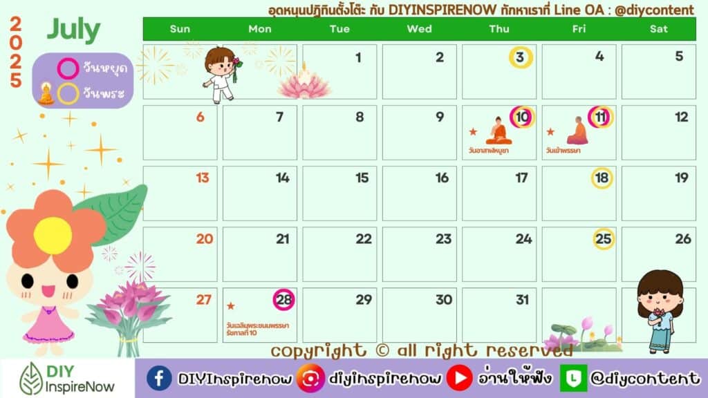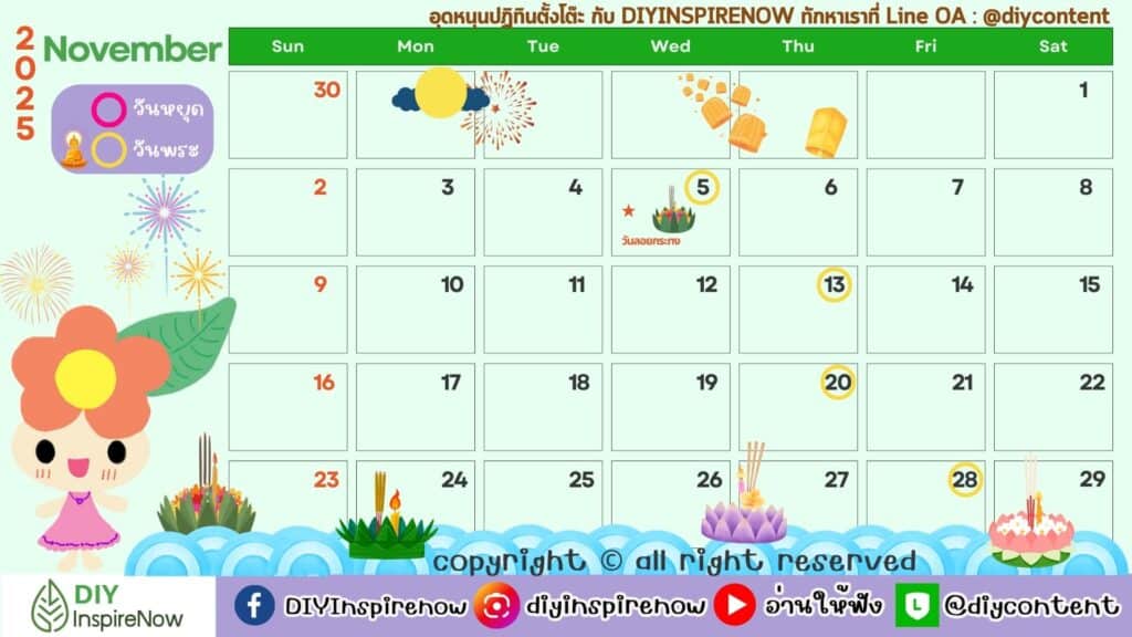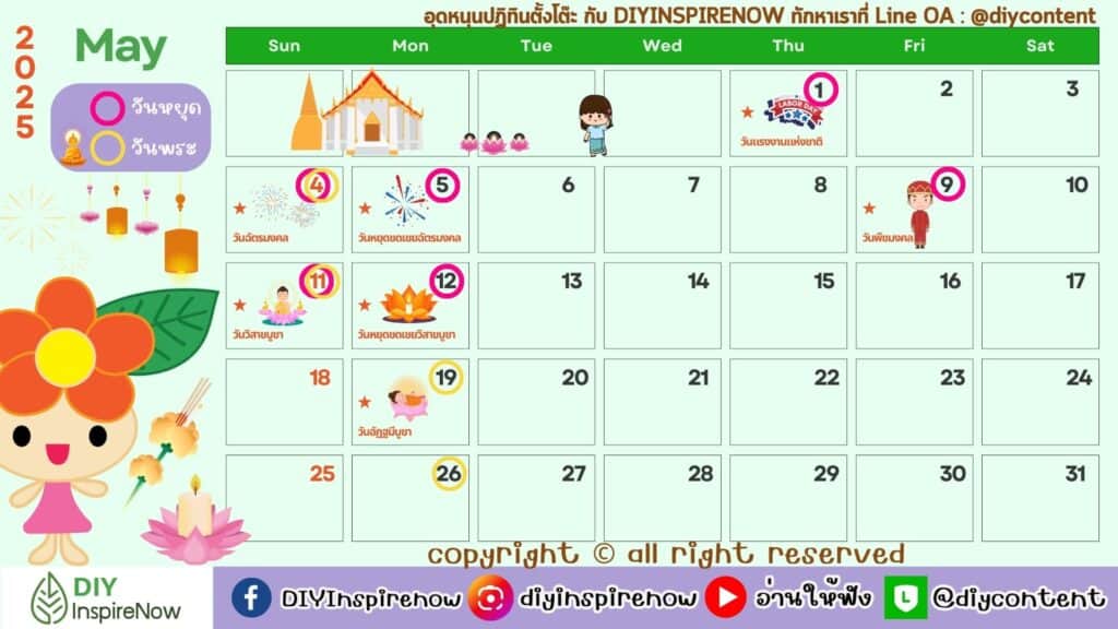ดาวน์โหลดไฟล์ ปฏิทินวันหยุด วันพระ วันสำคัญ ฟรีได้เลยที่ >>> LINE OA – diyinspirenow