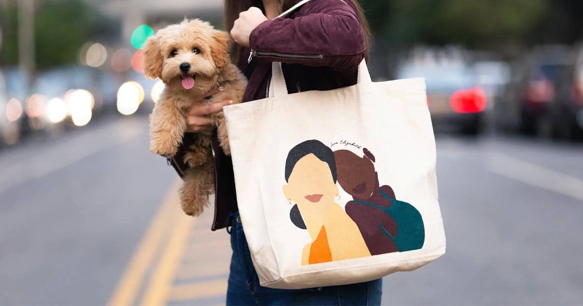 สำหรับสายอาร์ตที่ชอบงานเพนท์ไม่เหมือนใคร แนะนำถุงผ้ารักษ์โลกเพนท์ลายสวยเก๋จากศิลปินอิสระใบนี้ ทำจากผ้าแคนวาสหรือผ้าดิบ ความเก๋อยู่ที่มีการตกแต่งประดับต่างหูจริงที่รูปเพนท์ด้วย มาในทรงแบนสี่เหลี่ยมแนวนอนให้ความจุดีพอสมควร ใส่ของได้เยอะ ผ้าดิบจะมีความแข็งแรงทนทานรับน้ำหนักได้มาก ไม่ขาดง่าย สามารถระบายความร้อนได้ดี แต่จะแห้งช้ากว่าผ้าอื่นๆ จึงไม่เหมาะกับการใส่ของที่มีความเปียกชื้น แต่สามารถใส่ของหนักๆ เช่น หนังสือ ผลไม้ ขวดน้ำ หรือเสื้อผ้าได้ค่ะ