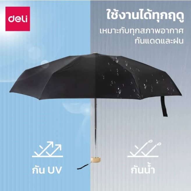 อีกหนึ่งร่มพับ แข็งแรง มีให้เลือกด้วยกันถึง 5 สี โดดเด่นด้วยเทคโนโลยีป้องกันแสงแดดเนื่องจากเคลือบไวนิลสีดำ เป็นฉนวนกันความร้อนที่ป้องกันความร้อนได้ยาวนาน น้ำหนักเบาแค่ 170 กรัม ถือง่าย ไม่หนักมือ นอกจากโดดเด่นเรื่องกันแดดแล้ว ยังกันฝนได้ดีอีกด้วย