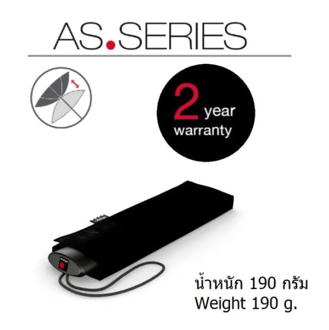 มาต่อกันที่ร่มพับยี่ห้อ Knirps รุ่น AS.050 ดีไซน์เรียบหรูดูแพงสมราคา เป็นการผสมผสานลักษณะที่สำคัญที่สุด 3 ประการ ได้แก่ ขนาดเล็ก น้ำหนักเบา ด้วยความยาวเพียง 25 ซม. จึงใส่ได้พอดีกับกระเป๋าทุกแบบ หรือแม้แต่เก็บไว้ในกระเป๋าเสื้อแจ็กเก็ตก็ยังได้ อีกทั้งยังน้ำหนักเบาเพียง 190 กรัม เหมาะสำหรับการเดินทาง และการใช้งานในชีวิตประจำวัน แถมมีด้ามจับมาพร้อมสายคล้องข้อมือ