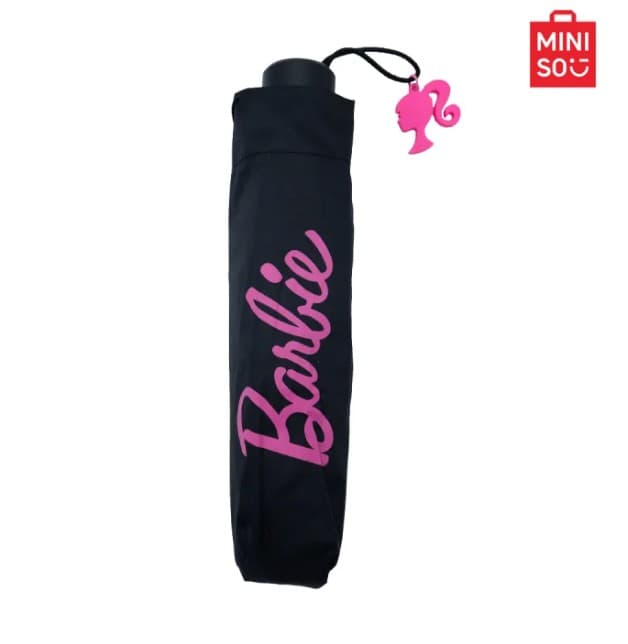 อีกหนึ่งร่มพับ แข็งแรง กันแดด กันฝน จากร้านขายของกุ๊กกิ๊กที่ยืนหนึ่งเรื่องความน่ารัก อย่าง MINISO นี่เป็นคอลเลคชั่น Barbie Collection ตัวร่มทำจากวัสดุคุณภาพดี ใช้งานได้ทนทาน จะหน้าฝน หรือหน้าร้อนก็สามารถใช้งานได้ ด้านนอกสีดำ ช่วงป้องกันแดดได้อย่างเต็มที่ ส่วนด้านในเป็นลวดลายบาร์บี้สุดน่ารัก ช่วยเพิ่มความสดใส น้ำหนักเบา พกพาสะดวก มีซองเก็บสวยงาม