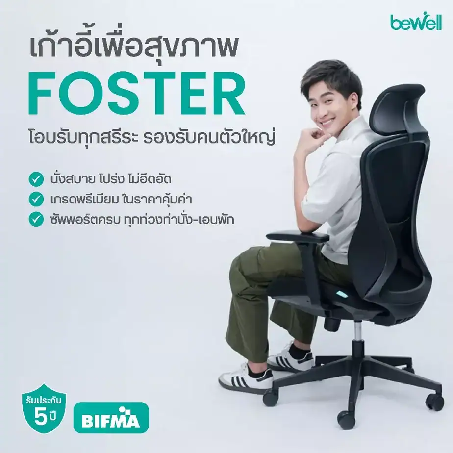 Bewell Foster เก้าอี้ทำงานสุขภาพ ที่พักแขน 3D พิเศษ สำหรับคนรูปร่างใหญ่ โอบรับทุกสรีระ